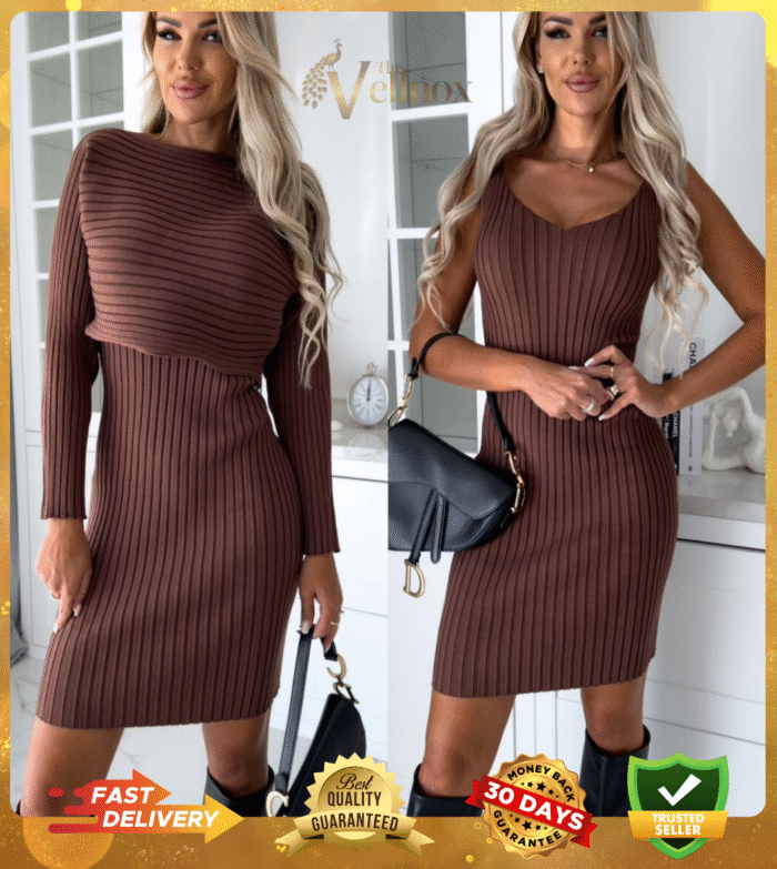 1 review for 2pcs Suit Women’s Solid Stripe Long-sleeved Top And Tight Suspender Skirt Fashion Autumn Winter Slim Clothing