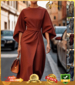 2 reviews for Loose Batwing Sleeve Dress Fashion Waist-tighted Solid Color Elegant Dresses For Women Clothing